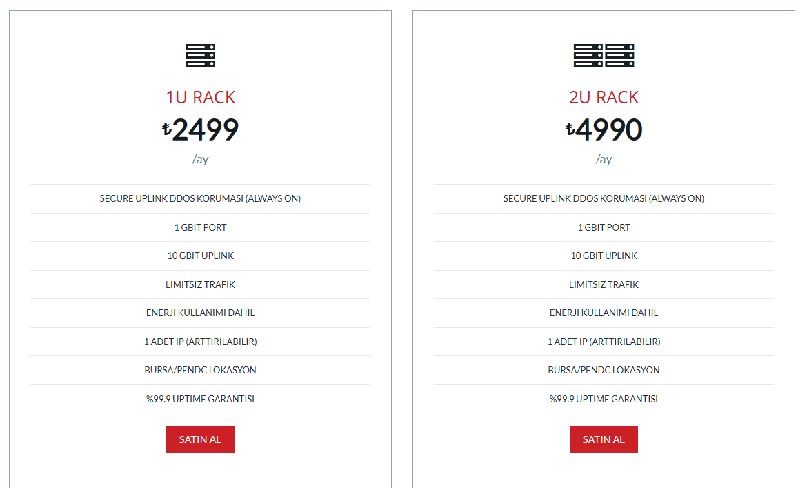 HostLAB, hem 1U Rack hem de 2U Rack barındırma seçenekleriyle farklı ölçeklerdeki işletmelere özel çözümler sunar. Her iki pakette de limitsiz trafik, 1 Gbit port, 10 Gbit uplink hattı ve enerji tüketimi dahil avantajlar bulunur.