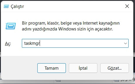 • 2. Adım: Açılan kutucuğa taskmgr yazın ve tamam deyin